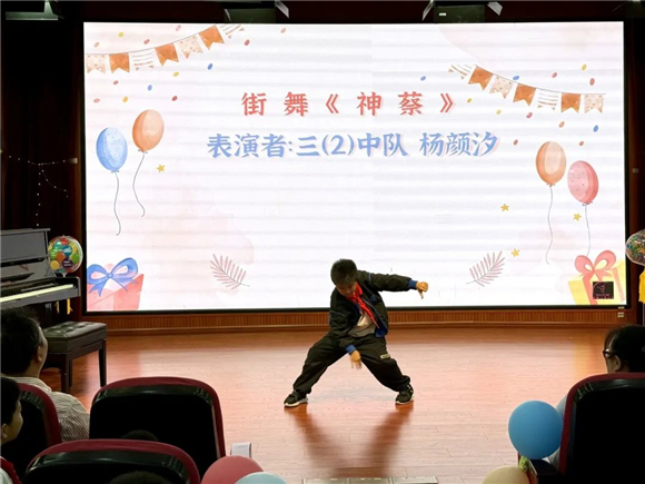 三(2)中队的杨颜汐带来动感十足的街舞表演《神蔡》,让现场气氛达到高潮,此刻让青春绽放个性。