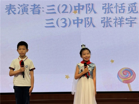 三(2)中队的张恬觅和三(3)中队的张祥宇宣读《十岁宣言》,语言铿锵有力,诉说着成长、感恩与期待。