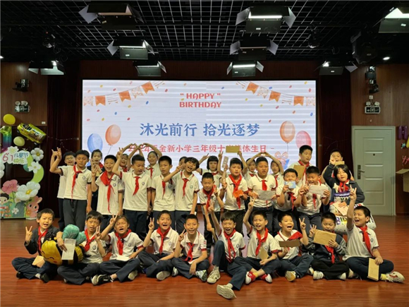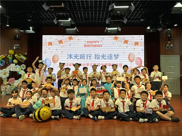 2024年5月31日下午,金新小学“沐光前行 拾光逐梦”三年级学生十岁集体生日生日活动在小剧场举行。十岁,我们以礼记之,用仪式礼赞十岁少年的新篇章。
