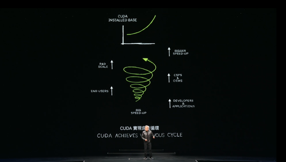 黄仁勋称CUDA平台已实现良性循环。来源:英伟达直播