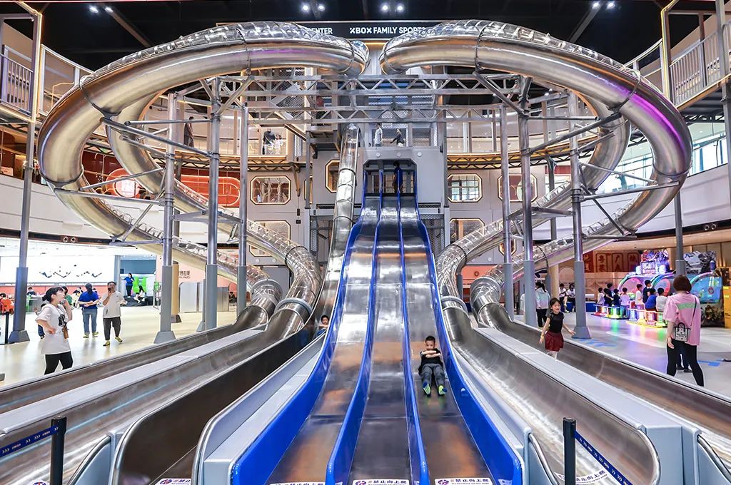 XBOX家庭运动中心品牌创始人庞浙东介绍,高空飞索有10米高、36米的超长索道,搭上飞索就能秒变“空中飞人”,感受长时间的持续加速滑翔;高空拓展也是10米高,上下两层,摇晃汀步、吊索漫步、空中独木桥等30多个关卡迷踪交错,挑战一环扣一环;疯狂滑梯俱乐部11米高,有8道滑梯,含超大不锈钢螺旋滑梯、网红波浪滑梯、90度垂直滑梯等,可以体验不一样的速度与激情,而银色调的外观极富科技感和高颜值,打卡拍照也是一绝。
