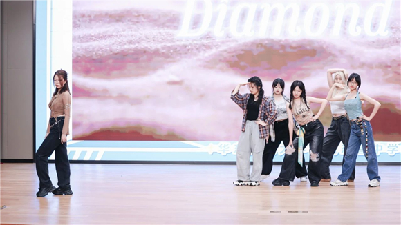 王天悦、施佳翎、闵宇珠、陈沐元、杨天天、张静怡带来第三篇章开场表演《diamond》。