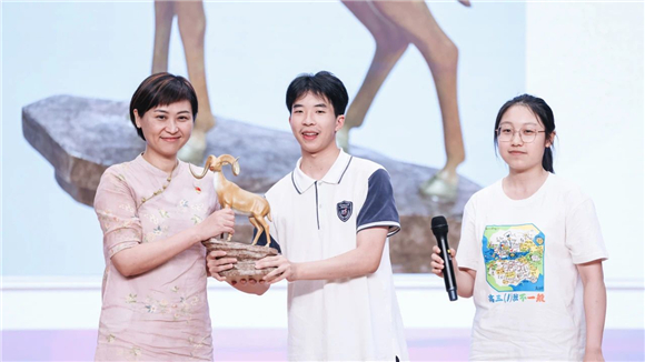 怀着对母校的爱与感激,学生代表顾昕恬、李嘉俊为东昌献上了一份珍贵的毕业留念,金瑜书记代表学校接受了这份毕业纪念。顾昕恬表示,2024届同学送给母校的领头羊铜像,既感恩母校过往之爱护,为同学们提供了优质的教育资源和成长环境。也赞许母校近年来在教育事业上的不断突破。更祝愿母校未来像领头羊一样,成为羊群中最卓越的个体。金书记感谢2024届赠予母校的礼物,“合群、孝顺、吉祥”是东昌学子的特质,一届届、一代代东昌人的努力、传承和坚守,才有母校70年的发展、昌盛和辉煌。祝愿2024届的每一位学子在今后的学业和人生路上勇做领头羊、洋洋得意、扬帆起航、扬名四海!
