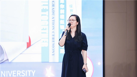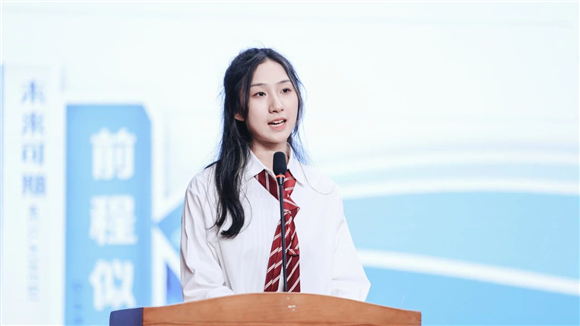 学生代表包亦涵也表达了她的毕业感悟:感恩所有的遇见和这三年来所有给予过同学们爱与温暖的人;对自己的能力和独特性要有正确的认知;在不断的奔跑中接纳自我、突破自我,更在有限的人生中,把握无限的可能。飞奔的少年最动人心,奔跑的时候像穿过了光阴。