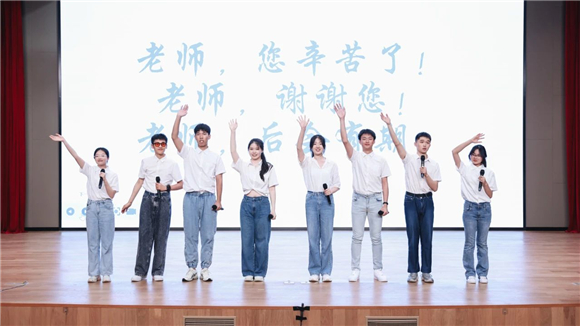 典礼的最后,合唱团成员陶悦萌、黄子涵、汪雅萍、杨诗语、于添益、秦一宸、闫佳路、郭彦麟、张婧瑶、钱璟、陈思佳、傅婷玥、王欣妍、沈家瑶、董倍怡带来《那些年》,用歌声与母校作别,奔赴下一场山海。