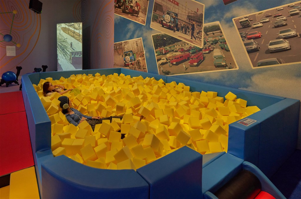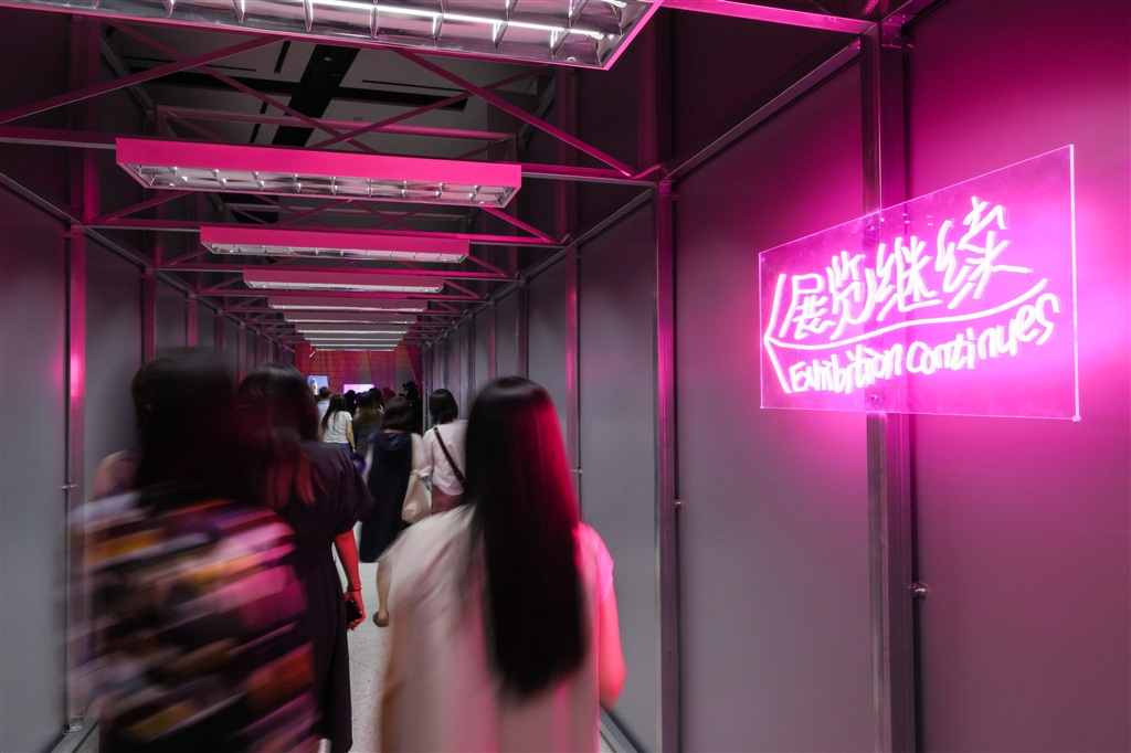 值得一提的是,展览像是一座精心搭建的大型沉浸式剧场,进入展区就像步入一条时空隧道。作品在灯光、音效以及展览本身的视觉元素的共同作用下,构成一个个完整的戏剧化场景,带给大家充满惊喜的360度的沉浸式体验。浦东美术馆董事长李旻坤表示,“观众在观展的过程中可以坐着或躺着,或跟作品互动,还有出乎意料的发现,这也是本次展览的趣味性和互动性所在。”