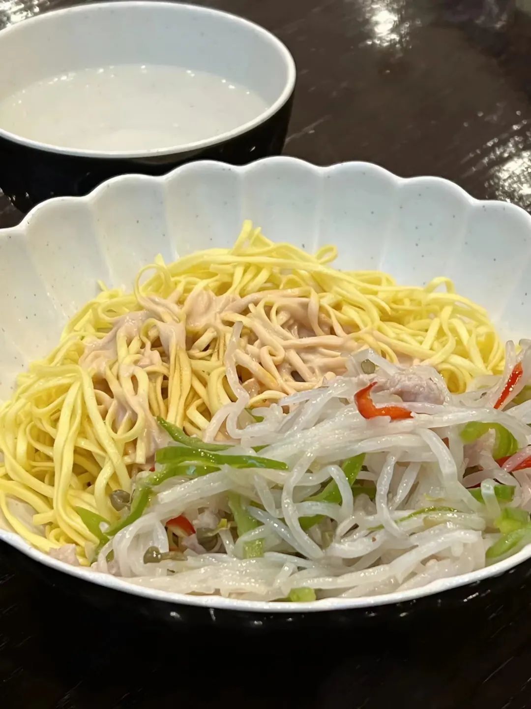 店内的特色是鸡蛋冷面鸡蛋面泛着鹅黄面条根根分明清清爽爽很有劲道