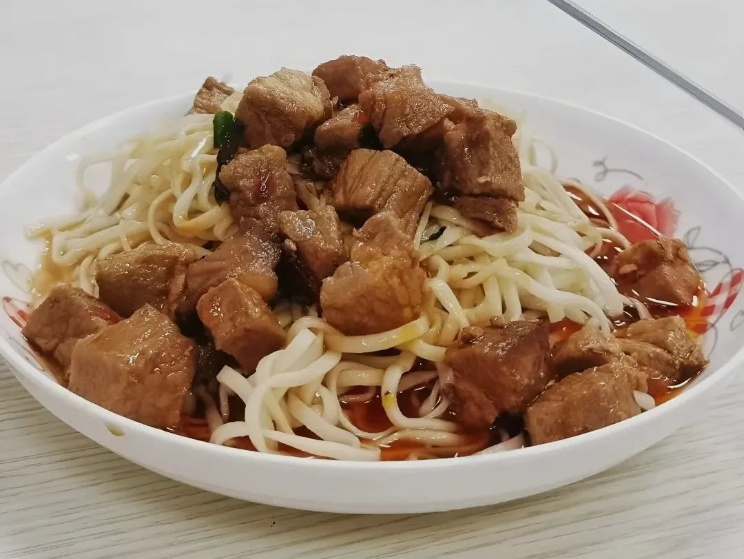 店里的辣肉冷面也是一大特色辣肉堆得满满的咸淡适中