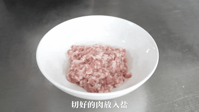 第二步:将切好的黑毛猪肉丁加入适量的糖、盐、味精进行腌制,随后放入马蹄、小葱、加入鸡蛋清,放入生粉,搅拌均匀,确保每一块食材都能充分融合香味