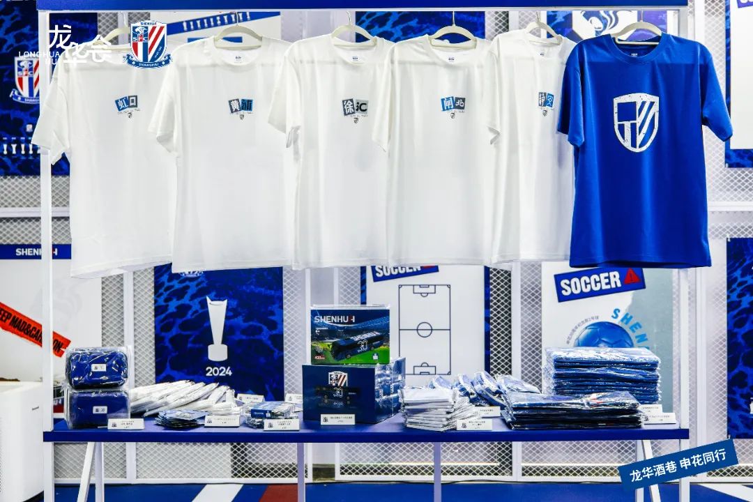 限时营业的上海申花周边零售快闪店内,集结了纪念版足球、环保袋、毛巾、球衣等数十款申花球迷的“心头爱”。上海龙华会申花快闪店负责人戴健俊介绍,上海申花城区文化系列T恤和毛巾款的申花蓝色助威围巾都是这次限量首发的周边。