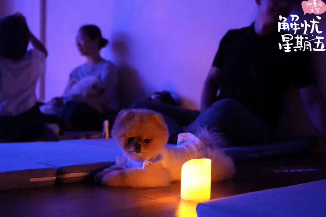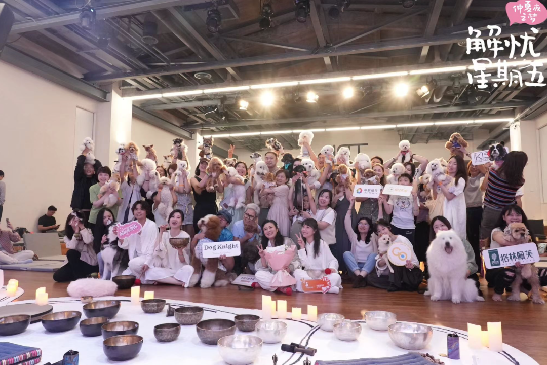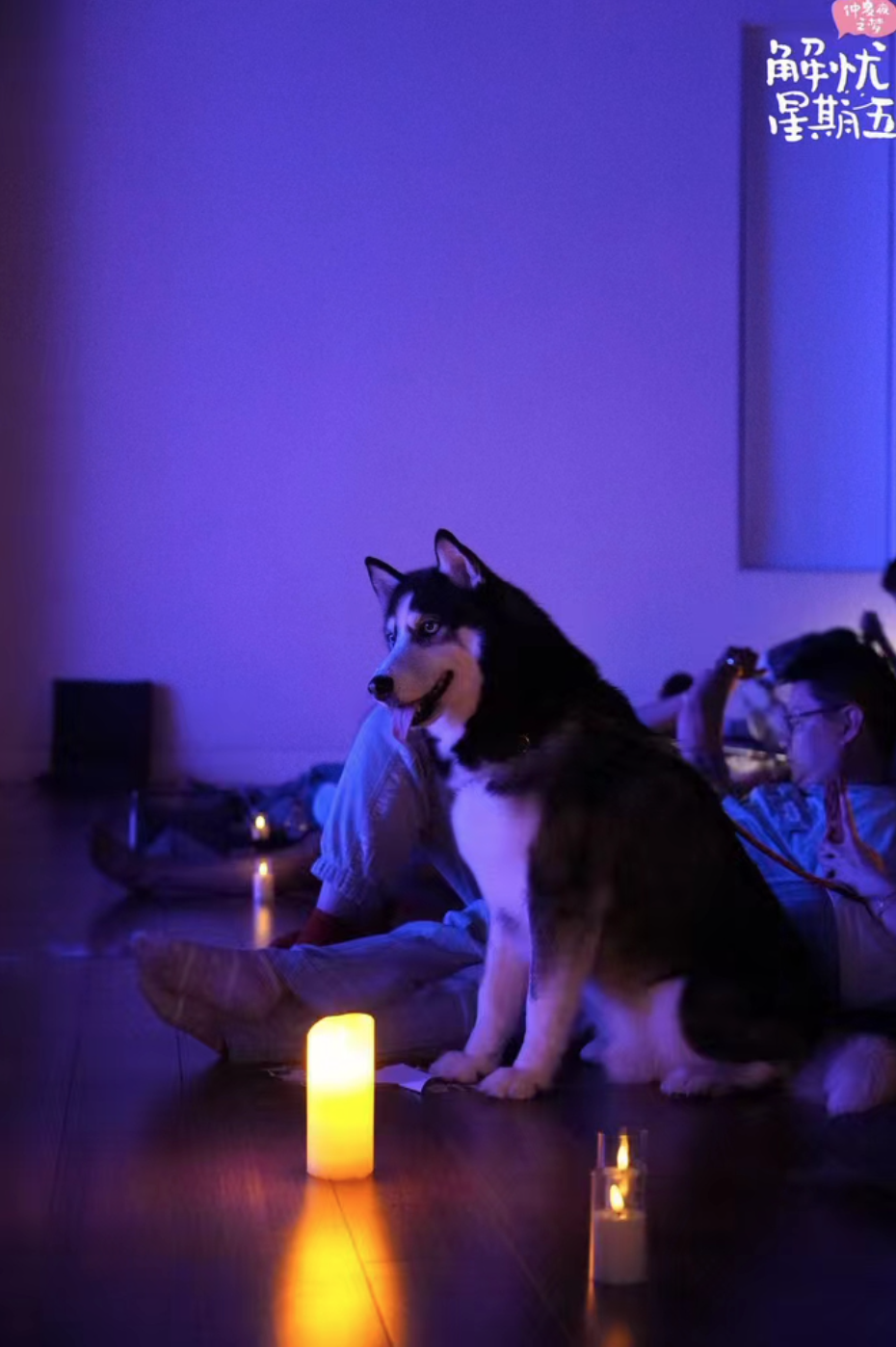 在现场,记者遇到了“回头客”吴女士,她带着自己的爱犬“里荣浩”来听音乐会。她告诉记者,上次来过,感觉很解压,“现场氛围的营造,悠扬舒缓的音乐、低沉而悠长的颂钵音波都特别棒,让人很放松,我和‘里荣浩’都听得睡着了。”吴女士说,因为有了第一次的良好体验,这一次,自己还邀请了朋友带着爱犬一起前来。