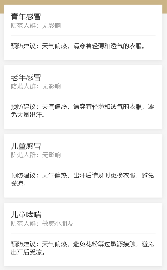 防范雷雨和大风天气。及时收起室外物品,防止高空坠物。遇到雷电天气,注意及时到室内躲避,勿在大树、空旷处以及广告牌和临时搭建物下停留。