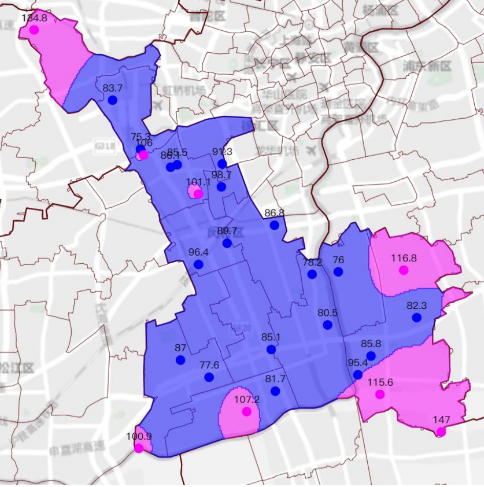 图1:6月18日20时至24日8时闵行区累积降水量图