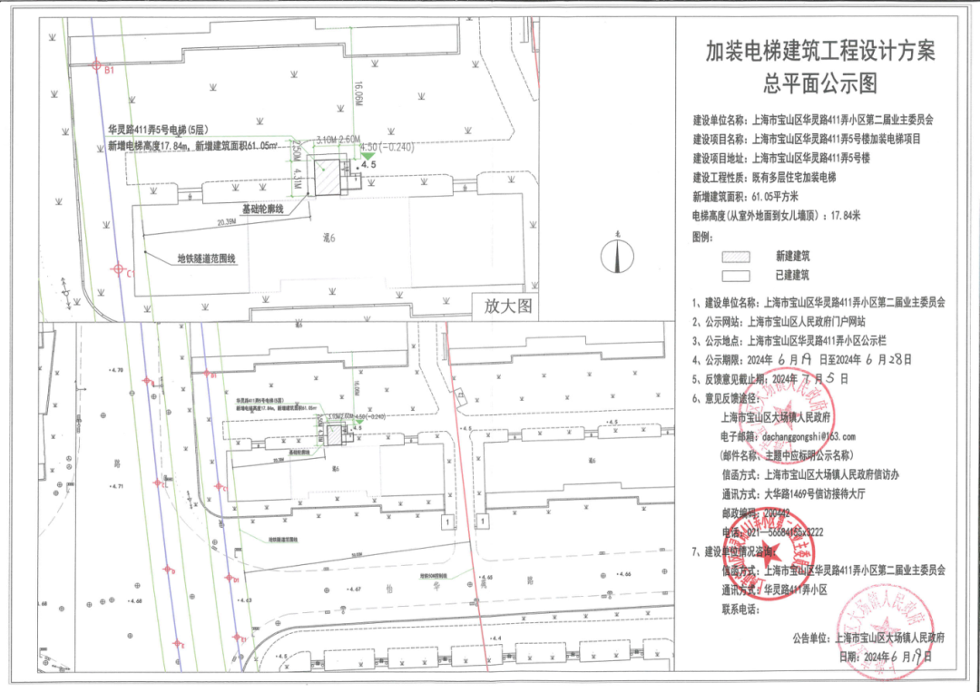 上海市宝山区华灵路411弄5号既有多层住宅加装电梯项目设计方案