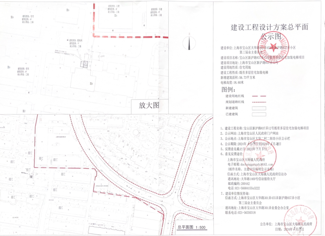 上海市宝山区新沪路837弄12号单元既有多层住宅加装电梯项目设计方案