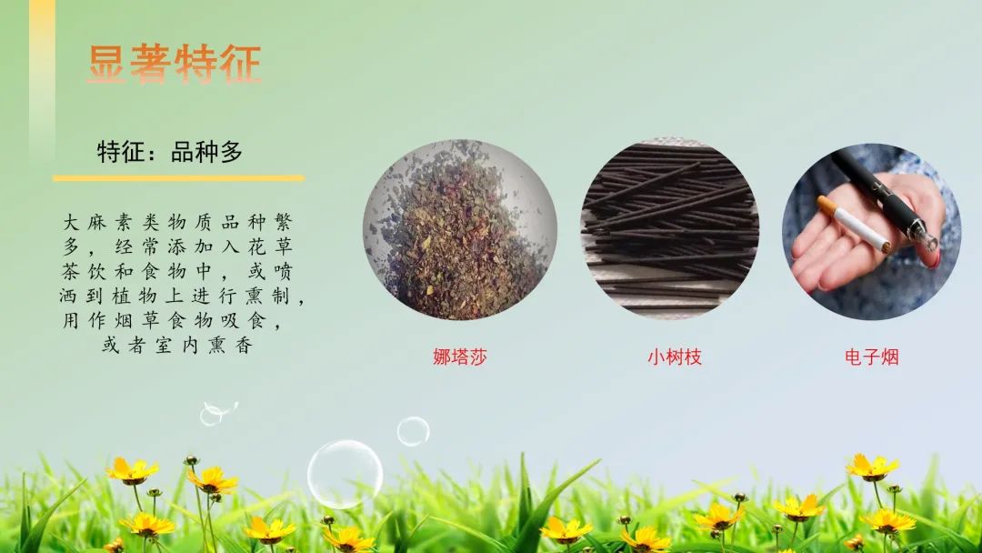 三是品种多。目前已发现的合成大麻素类物质,品种繁多。在美国,他们会添加入花草茶饮和食物中,或喷洒到植物上进行熏制,以天然草药产品或熏香的形式在网上公然售卖。我国境内的合成大麻素多以“小树枝”“娜塔莎”等形态出现。随着近些年电子烟的兴起,合成大麻素找到了新的宿主。不法分子将其添加入电子烟油中,利用监管漏洞,打着“合法”“高效”“时尚”等词汇,在社交平台上公然贩卖所谓的“上头电子烟”,诱骗青年人群接触吸食,造成了更为严重的影响。