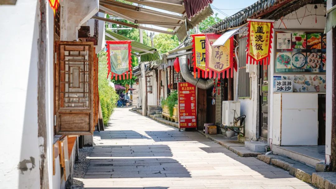 午后的时光,让练塘的夏日显得更加悠然自得。树叶在微风中摇曳,投下斑驳的光影,遮住了炎炎烈日。街边的小巷里,市民们围坐在一起聊天,把酷热驱散在茶杯中。还有些人选择躲进古镇的茶饮店,享受凉爽的空调和一份小吃,这是夏日午后的另一种美好。