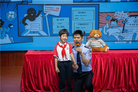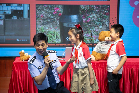 6月25日下午,上海市公安局治安总队的黄奕警官带着他的“警察小熊公仔”走进了进才实验小学西校的大华校区的校园,为即将进入暑期生活的小朋友们送来了“最好的礼物”——充满趣味性的安全教育主题课程,浦三校区的同学在线上同步收看了直播。在一次次的互动和游戏体验中,同学们的法制意识、防范意识和自我安全意识不断增强。