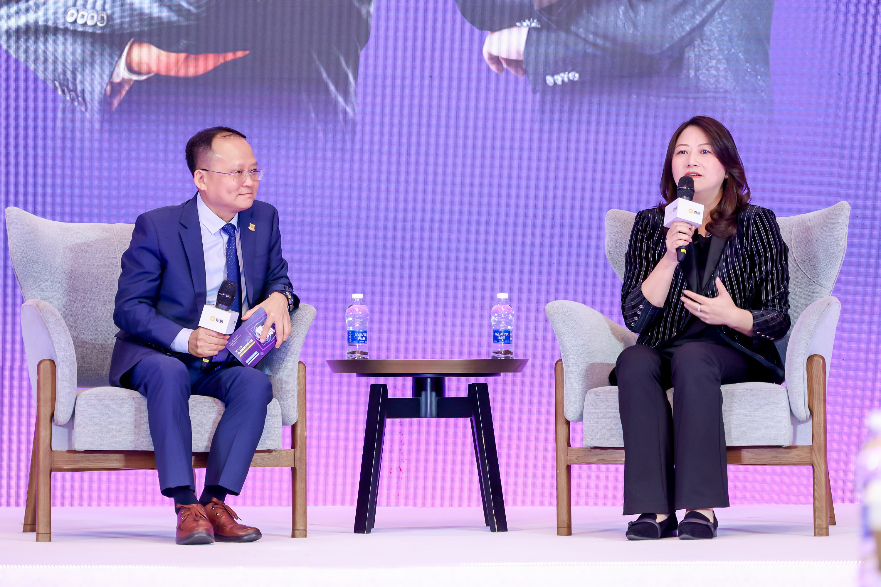 图注:杭州东方网升科技股份有限公司首席运营官兼迈点总裁罗钦(左)和魔方生活服务集团CEO柳佳(右)深度对话