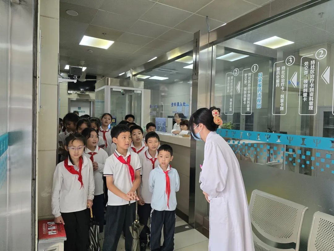 今天(6月26日)上午,上海市徐汇区精神卫生中心院内——青少年禁毒科普基地开展了禁毒主题科普参观交流活动,来自多所学校的在校学生团队走进禁毒科普馆、禁毒园,在基地讲解员的生动讲解中了解了禁毒工作的历史、各类毒品的危害及识别、防范毒品的知识以及美沙酮药物维持治疗门诊的运作模式等。