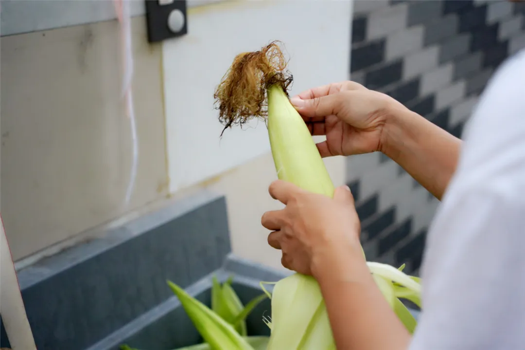 揭盖的瞬间,玉米的香甜飘满厨房,令人垂涎欲滴。迫不及待地尝上一口,玉米的清香、甜糯在舌尖弥漫,就是这口怀念已久的香甜。“刚摘下的玉米最嫩,吃起来最香了。”朱阿姨拿起一根尝上一口,露出了满意的笑容。