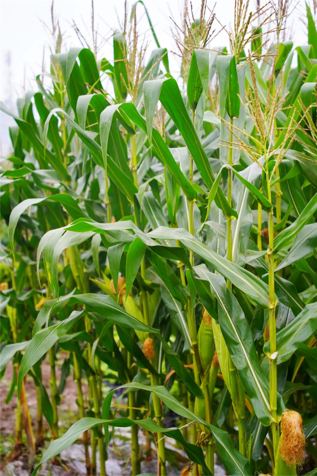 一行行玉米植株笔直地矗立在田地中