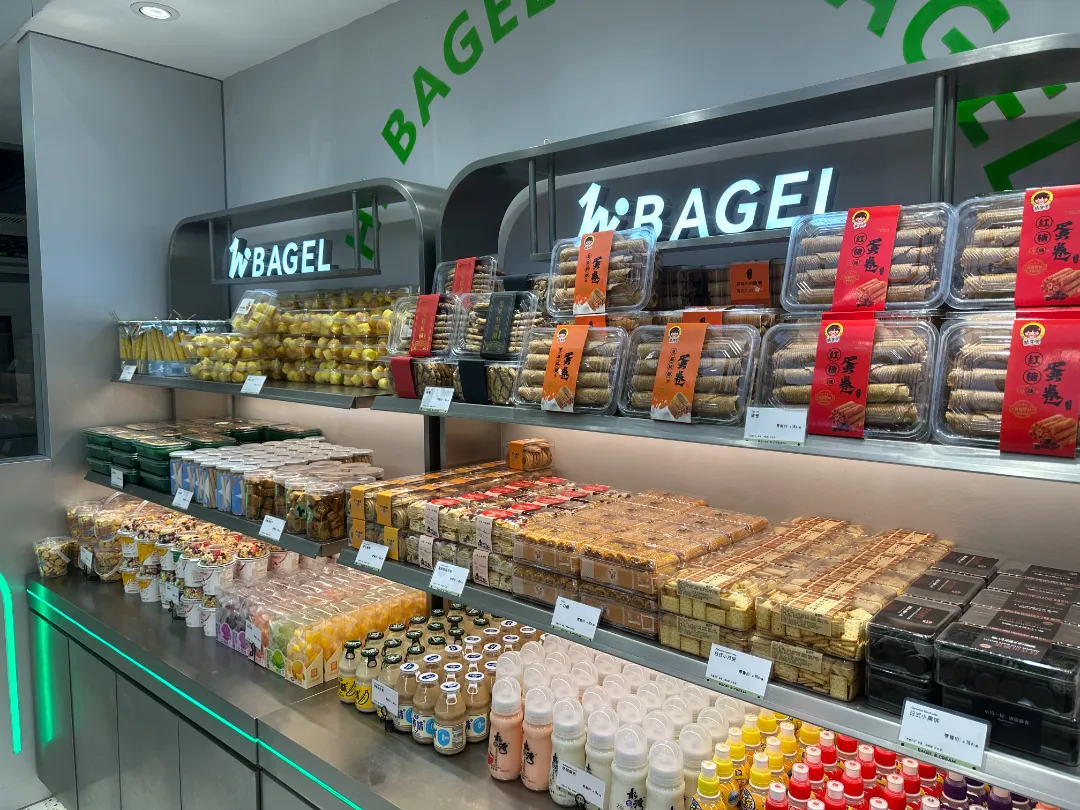 走进hi·BAGEL店内,入眼便是琳琅满目的商品。从经典的贝果到创意十足的面包,从健康的全麦到甜蜜的甜点,无论你的口味如何,都能找到满意的答案。新鲜出炉的贝果散发着天然的麦香,让人仿佛置身于金色的麦田之中。外皮呈现出诱人的金黄色,表面微微的光泽透露出烘焙的完美程度。