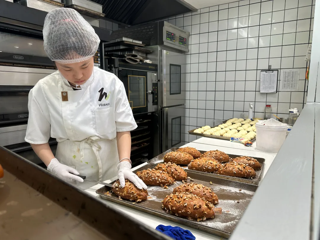 店内窗明几净,顾客也可以通过窗口看到面包的制作过程。在这里,每一位烘焙师都以匠人之心,精心制作每一款面包和贝果。他们对烘焙工艺的热爱和对品质的追求,让每一份产品都充满了手作的温度和心意。