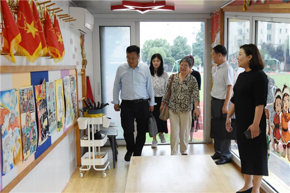工作组领导们根据评估指标,进入校园,实地查看了学校软硬件设施,重点参观了学校乐读吧、乐部落、乐回收等非正式学习空间,对于学校坚持儿童立场,着眼“一米高度”,营造温暖、和谐的校园环境给予高度评价。