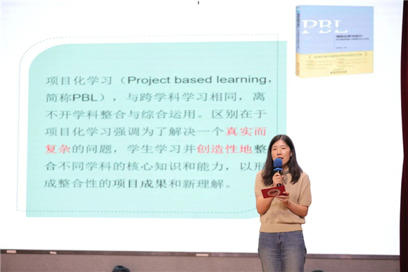 程芳老师由一张“纸”引出学校在课程教学改革经历的探索与实践。以“学无‘纸’境”‘纸’向未来”为例,展示了各年级开展项目化学习的整体思考。