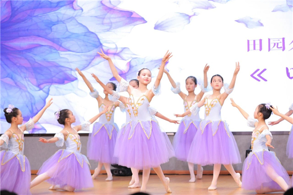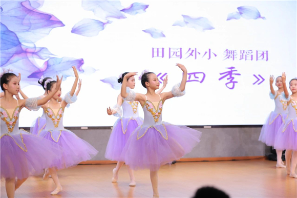 舞蹈社团学生的开场舞《四季》,用翩翩舞姿诉说着田园娃们正在田园沃土中汲取养料茁壮成长。