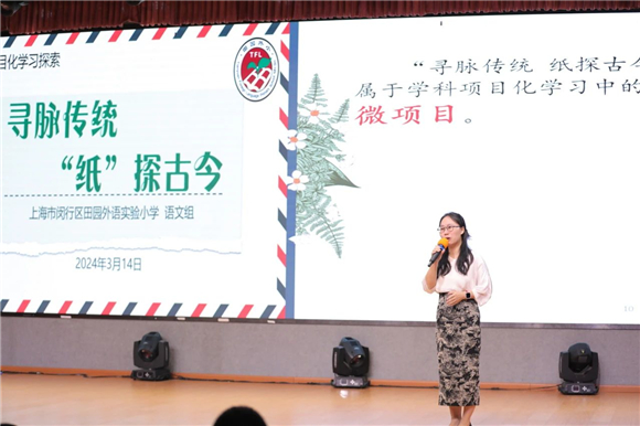 走进纸的“前世”。宣圣琦老师阐述了三年级语文学科以“寻脉传统‘纸’探古今”的微项目来溯源纸的前世。从《纸的发明》一课中提炼出“如何编写纸的宣传册”的任务,展现了学科项目从理念到落地的全过程。
