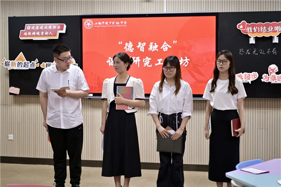 第二小组以“德智融合”课例研究为主题,通过引入一个德智融合课题研究工作坊第一次集中活动的情境,由每个组员演绎了一个“微型”的公开课,其中包含了课堂展示、设计阐述、同侪分享以及专家点评各个板块。这样的课例研究不仅促进了对于“德智融合”课题的探索和研究,更为老师们提供了一个深耕细作、精进教学的平台,为之后的研究起到了很好的示范作用。