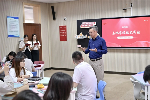 上海市杨园中学吴骏德校长作为一年中亲自参与了三次基地学校活动的聘任学校校长,他目睹了见习教师的拔节成长和精彩蜕变。他认为在建平实验中学这所标杆校的引领下,大家都变得更有自信、更加阳光。吴校长对见习教师有着更多的期待,希望新教师们继续保持朝气和活力,做会生活爱工作的人,做学生喜欢和崇拜的老师。