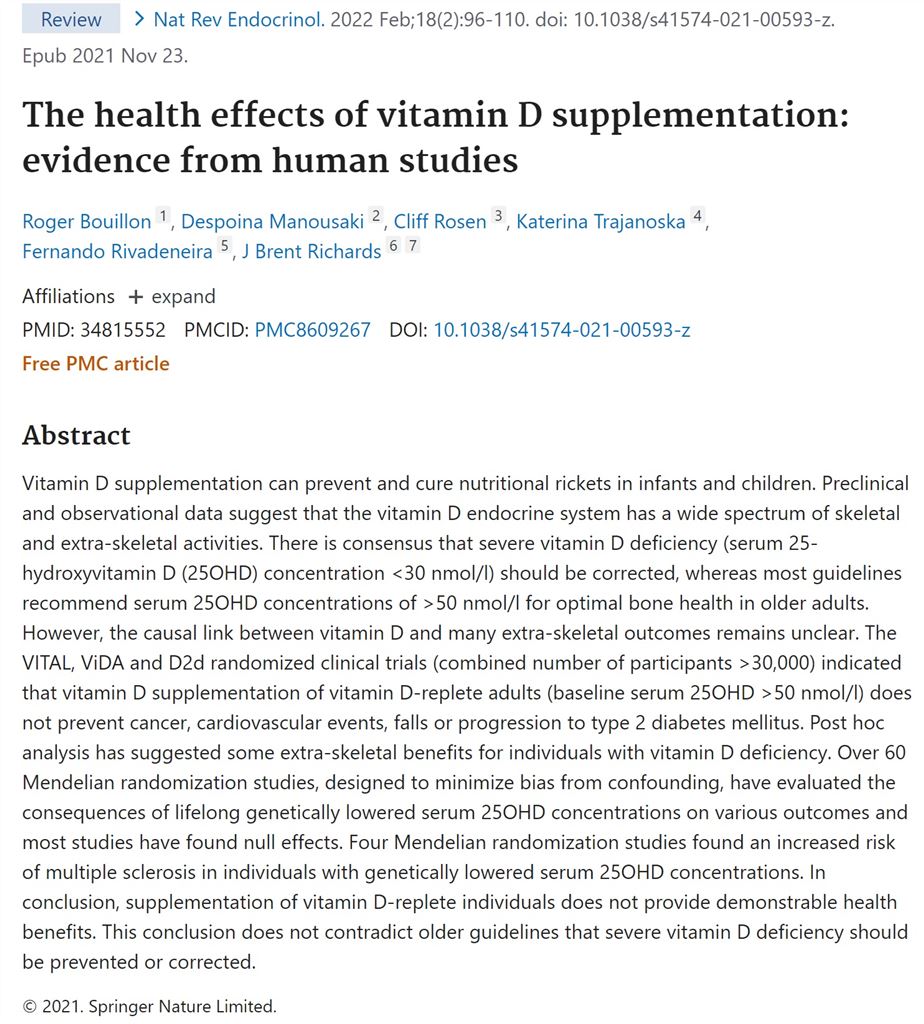 一项来自哈佛团队的分析研究指出,对于不能整天晒太阳和吃鱼肉的人来说,单独补充维生素D与自身免疫疾病的风险降低32%相关。对于体重指数较低的人来说,补充维生素D对自身免疫性疾病的预防作用更显著。