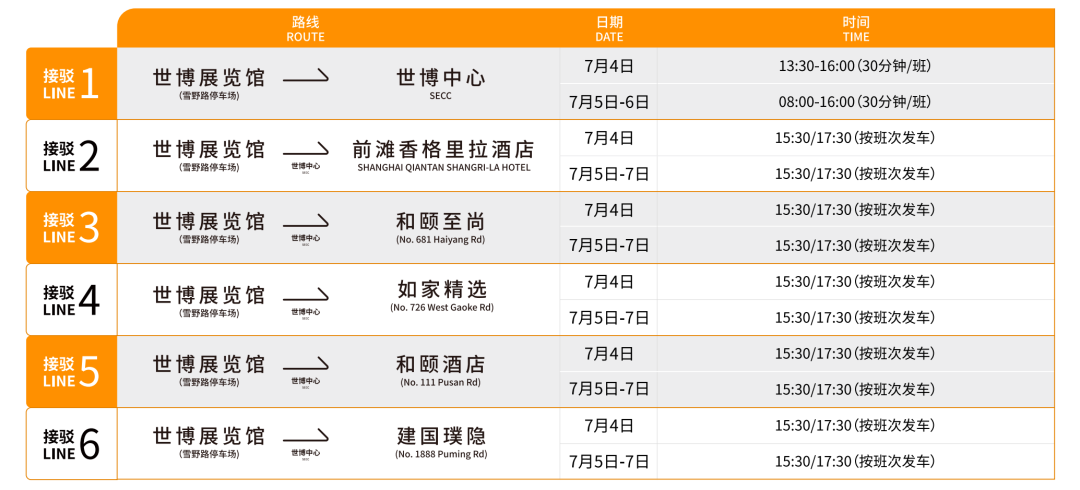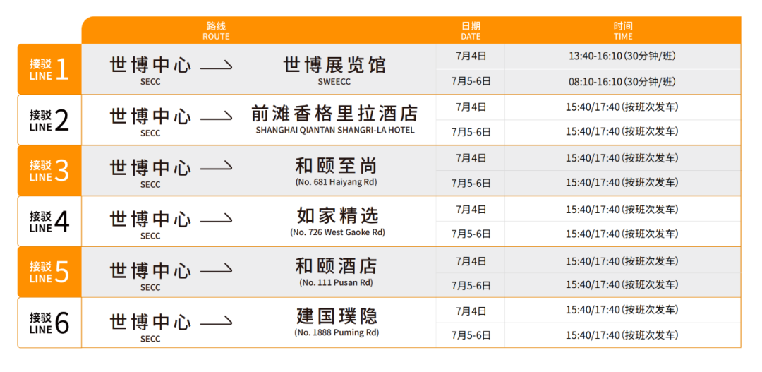 (1)乘坐轨道交通13号线至世博大道站1号口,步行580米,持证可由世博展览馆北门或南门进入
