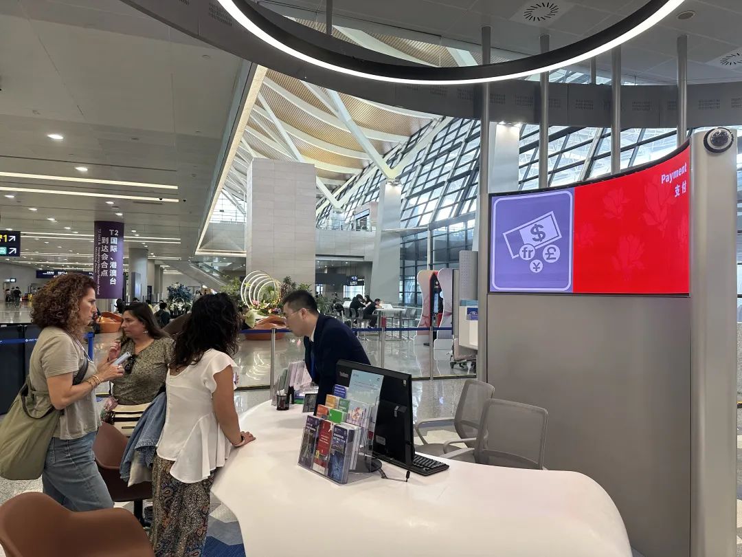 在通信服务窗口,可凭护照等证件办理7天、15天或30天的中国电信短期卡,满足短期逗留期间打电话、上网或是使用打车、外卖等应用软件的需求。城市公共服务"Hello老友”电话亭可提供免费国内通话3分钟、免费充电等普惠便民服务,为旅客入境后的通信服务“保驾护航",带来“宾至如归"的畅快上网体验。