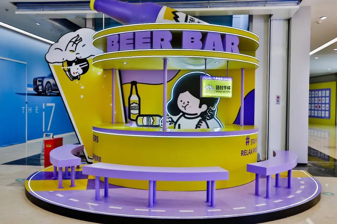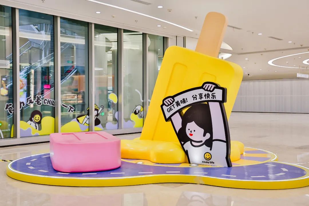 本次开业的另一大亮点——韩国萌趣潮流IP“啤酒蛋挞”首次在上海惊喜亮相。尽显萌态的花苞头女孩“蛋蛋子”形象在地下商业空间中处处可见,其身上“打工人”与“干饭魂”兼具的搞怪元素更是戳中不少人的心,吸引在场消费者纷纷打卡留念。
