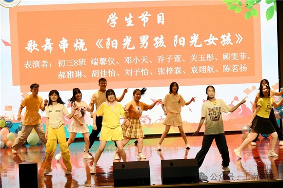在节目表演环节,毕业生们纷纷展现出他们多才多艺的一面。初三1班的陈函之和尚奕蕾同学带来了舞蹈表演《舞之韵》,让大家沉浸其中,感受到了舞蹈的魅力;初三8班同学们带来的歌舞串烧《阳光男孩阳光女孩》和初三7班李怡华同学的吉他伴唱《传奇》则让在场的每个人都陶醉在青春洋溢又美妙动人的音乐世界中。