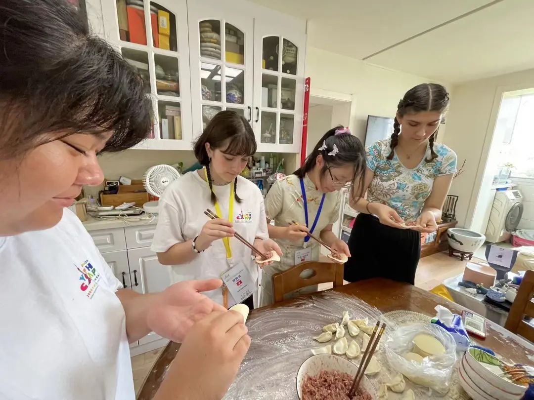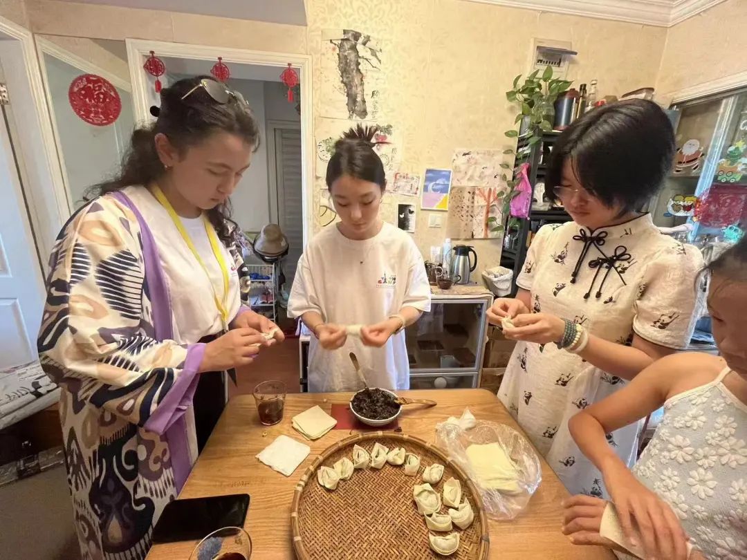 而为了让外国营员朋友感受中国文化中对家庭团圆的重视,乌兹别克斯坦组、瑞士组的志愿者家庭都安排了包饺子环节。中外青少年围坐在一起,一边包饺子、一边互动交流,充满了欢声笑语,其乐融融。