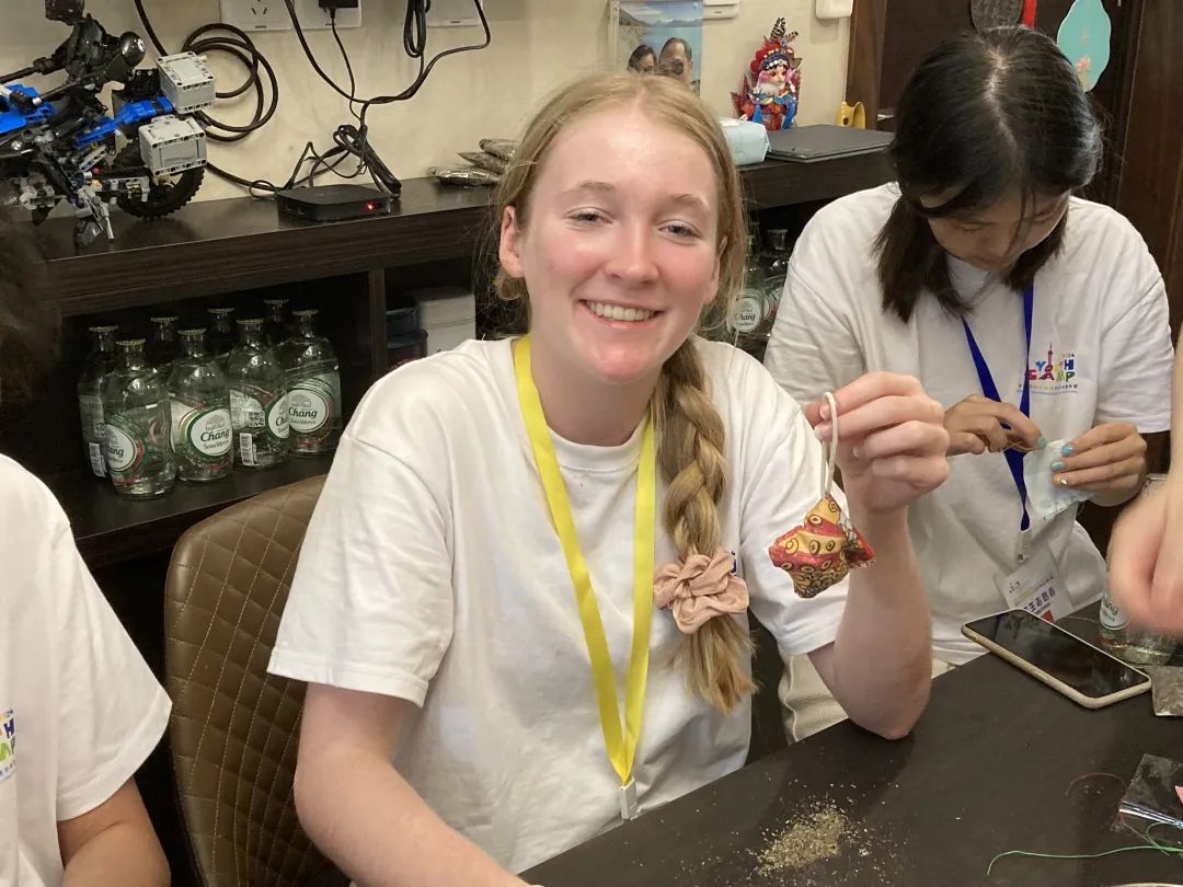 澳大利亚组的志愿者杨同学家庭为营员安排了手工制作干花团扇、手工香囊以及书法体验活动。代表着团结友善、吉祥如意的手工团扇、香囊,让营员们充分感受到中国独具特色的文化魅力。