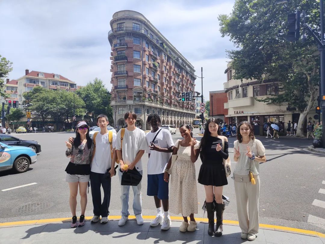 美国组和瑞士组的家庭则不约而同来到了网红打卡点武康大楼。武康大楼具有深厚的历史文化底蕴,虽然建造于100年前,但却得到了精心的修缮保护。当志愿者们向外国营员介绍起这些时,营员们不仅为这座法国文艺复兴风格的建筑所吸引,更被上海对建筑文化遗产的保护感动,纷纷拍照留影。