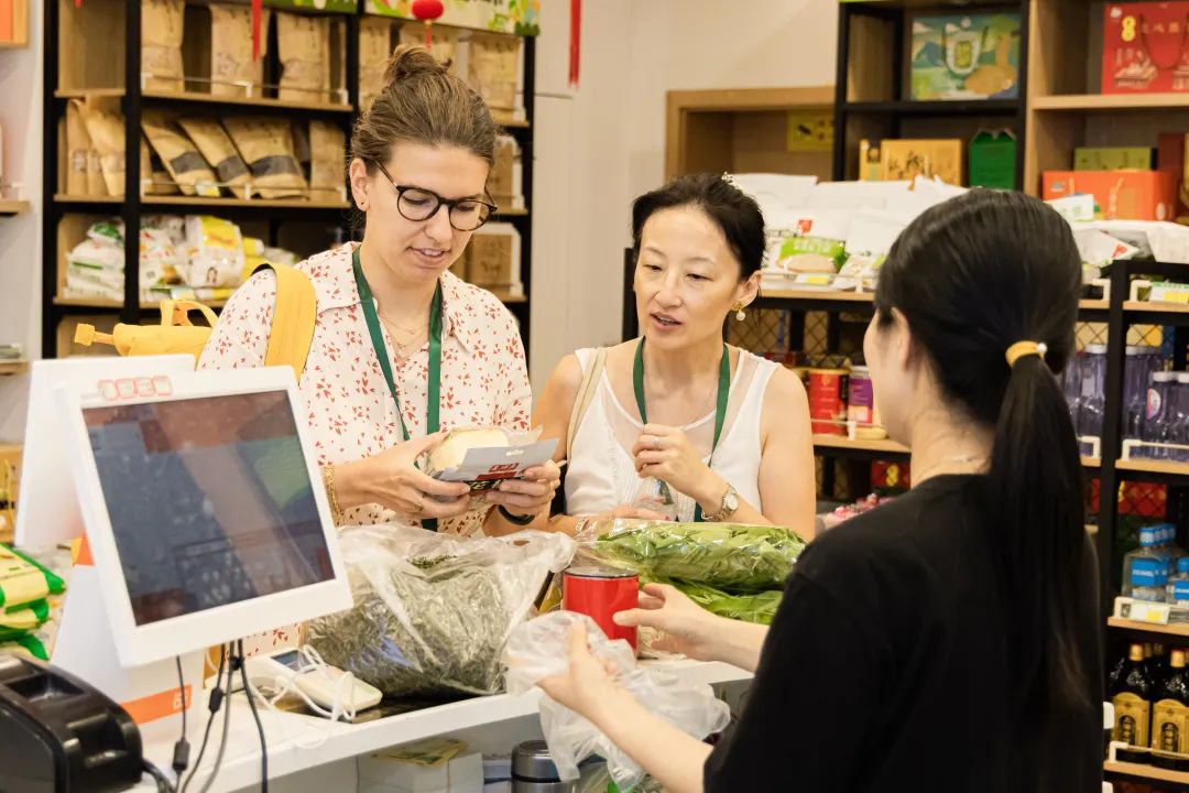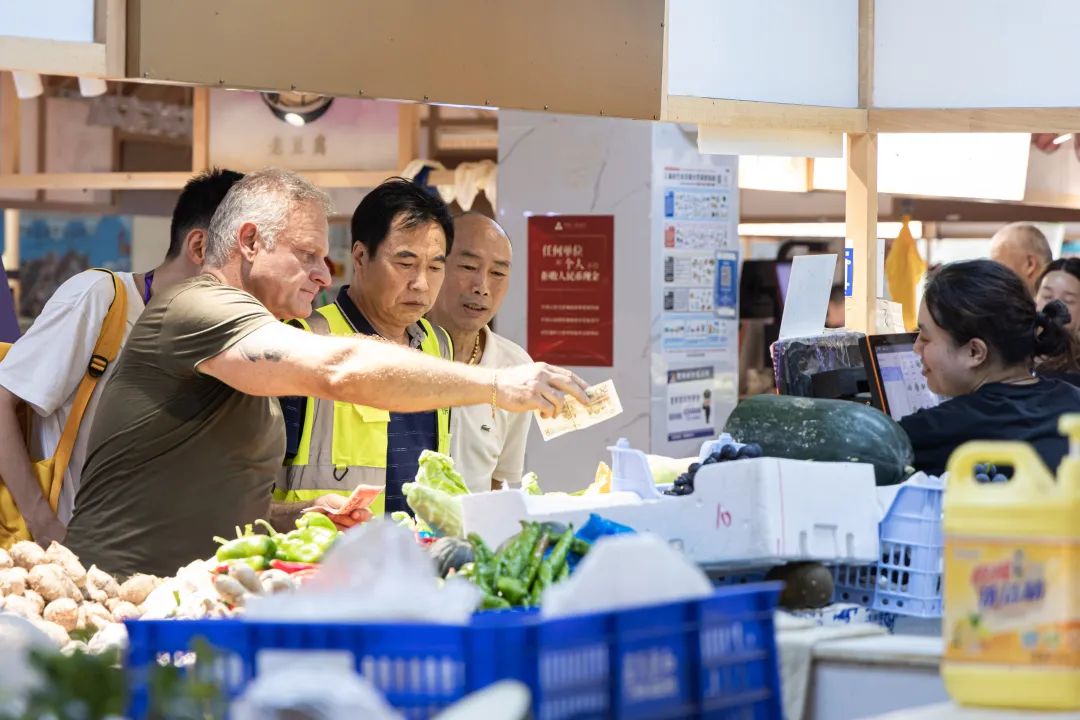 傍晚,外国师生们走进桂巷坊菜场,亲身感受社区“15分钟社区生活圈”的幸福生活。瑞士领队在摆满了新鲜胡萝卜的摊位旁驻足,在与摊主的反复沟通中,他惊奇地发现在瑞士作为一种零食的胡萝卜,在中国竟然可以作为一种食材,烹饪出不同的美味菜肴。斯洛伐克领队则买到了她最喜爱吃的水果葡萄,“这里拉近了我与上海人家的距离,很开心!”她对记者赞叹道。