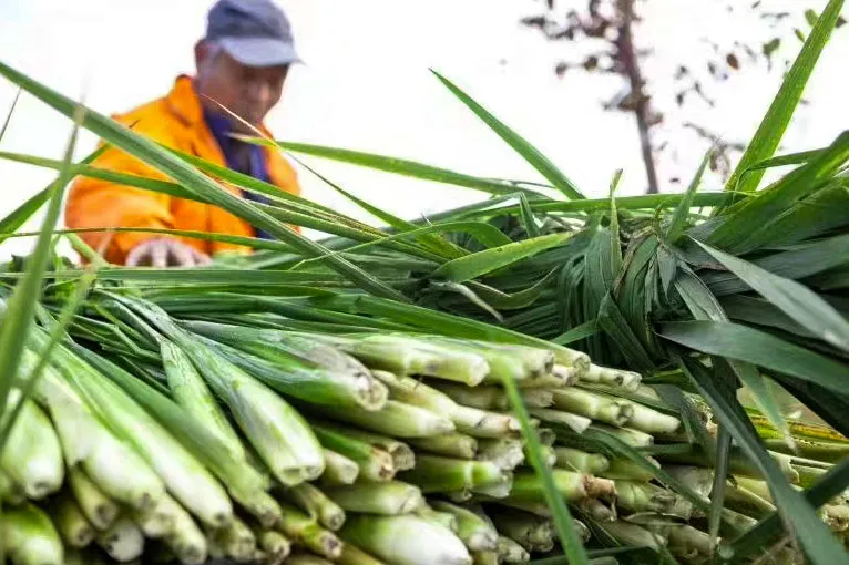 练塘,因地势低洼、水资源丰富、水质好、污染少等得天独厚的生态环境,成为“水八仙”之茭白的优势生产区,素有“华东茭白第一镇”的美誉。练塘茭白口感鲜嫩、爽脆,广受市场认可、市民青睐,是上海地区首个荣获国家地理标志产品保护的蔬菜品种,因富含营养、口感绝佳,素有“水中人参”的美称,是练塘的一张特色名片。据了解,今年练塘茭白种植面积约为1.3万亩,全年种植亩次保持在2.5万亩次左右,预计总产量约5.5万吨。