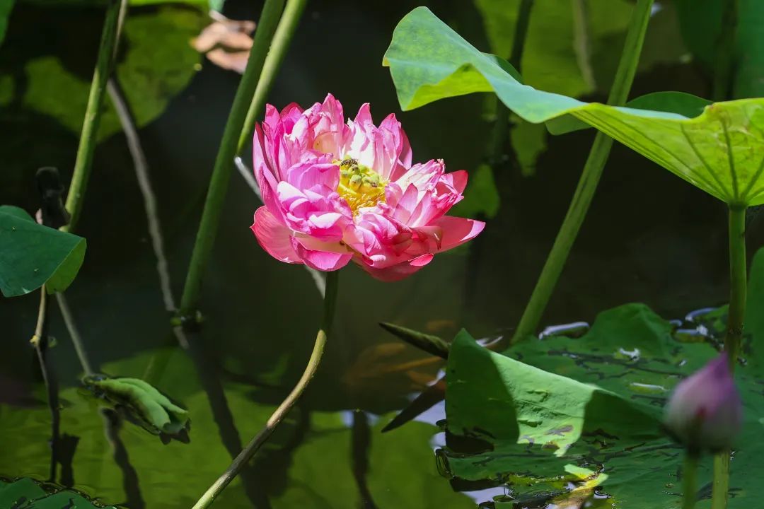 上海植物园化身为一片梦幻的绿洲,遍布园区的荷塘成为夏日里最引人注目的风景线。清风轻拂,荷香四溢,仿佛整个植物园都被这股清新之气所包围。