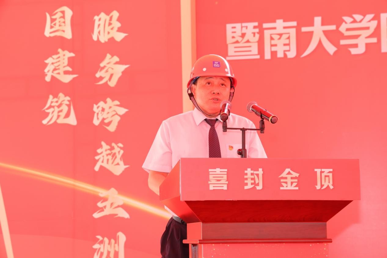 张水兴教授指出,暨南大学医学办学历史悠久,实力雄厚。暨南大学附属第六医院(东莞市东部中心医院)外科大楼的顺利封顶,标志着医院硬件设施的重大升级,这是校地合作深化医教协同、推动医学教育改革和创新的又一重要平台。张水兴教授希望,充分利用新大楼的资源深化医学教育改革、促进科研成果转化、强化医德医风建设以及服务区域社会发展,擦亮暨南医学在莞金字招牌。