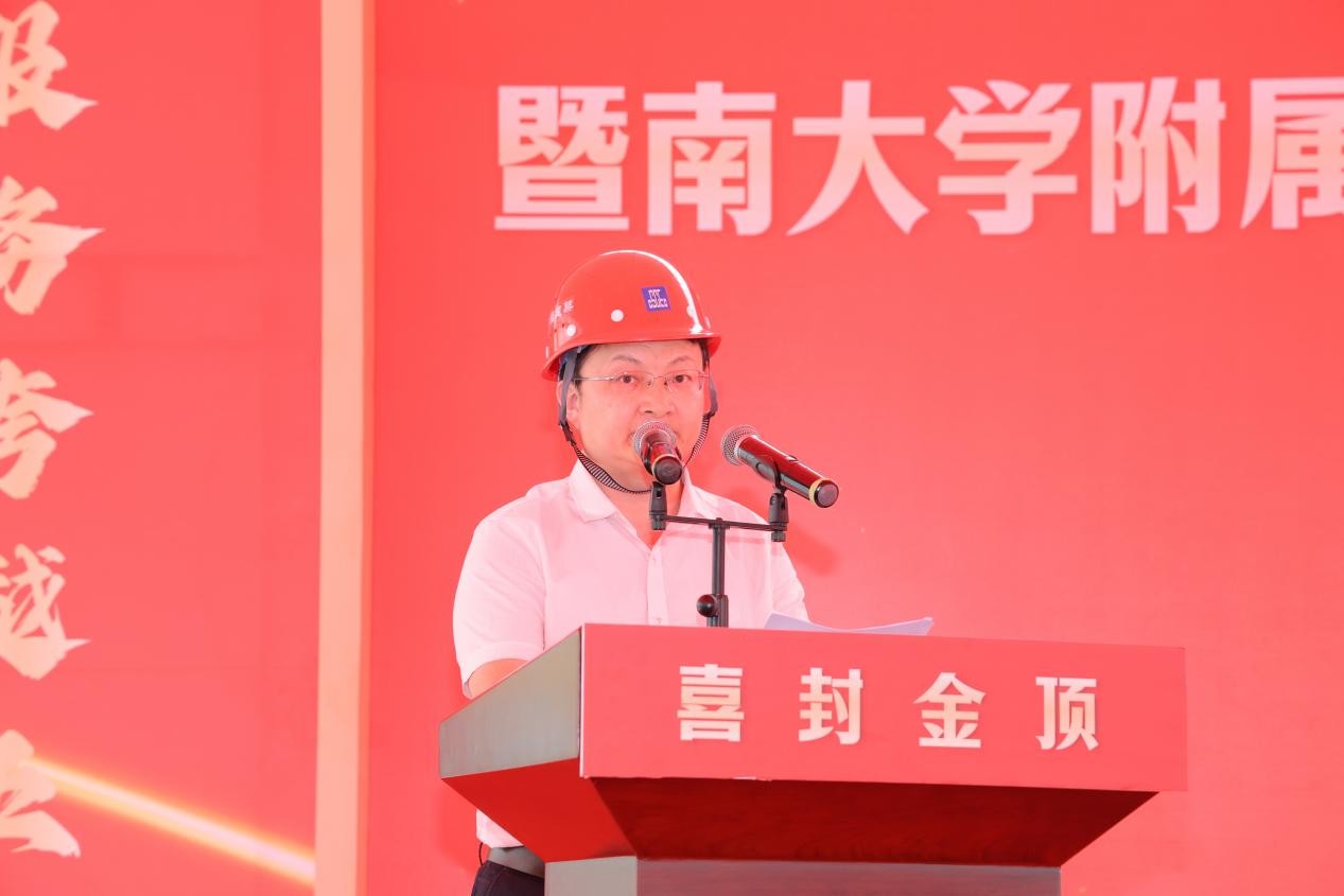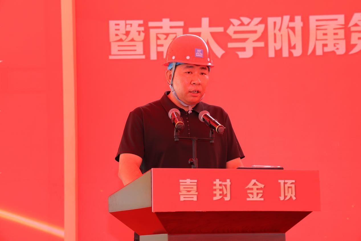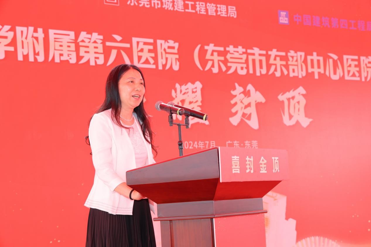 张巧利局长表示,以外科大楼为主体的医院改扩建项目是东莞市“城市品质三年提升计划”的重要工程项目,也是大力推动优质医疗资源扩容提质的重要举措,希望在主体工程顺利封顶后,全体参与建设的同志能够再接再厉,力争工程早日竣工、早日投入使用。同时,张巧利局长鼓励医院以此重要时刻为扬帆起航的新起点,紧紧围绕品质医疗、温暖服务、守正创新、协调发展的愿景目标,从群众的医疗需求出发,借助暨南大学强大的人才、科技、资源优势,全面提升医疗水平。