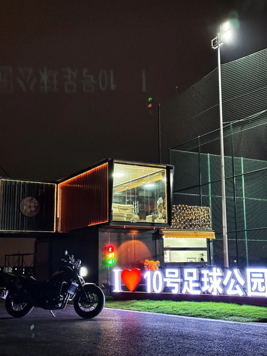 独立的两个足球场、齐全的配套设施、新颖的足球吧……“10号足球公园”占地约4000平方米,坐拥8人制及5人制两片场地,并配有专业级夜场灯光。这里有一个特别的全景透明观球平台,全透明的玻璃房能够毫无遮挡地观赏球赛。你可以在这里开展足球娱乐、对抗比赛、体能训练、少儿启蒙、企业团建、休闲小憩等活动。暑期约上三五好友,在绿茵环绕中来场足球赛,想必足够恣意畅快!