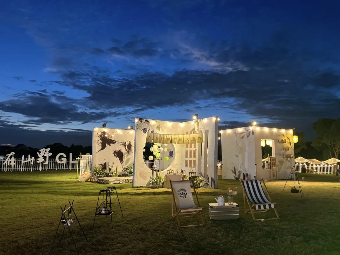 离城市不远,乡野很近,“在山野”属于你在山野里的憩息之地。“在山野”顾村露营营地占地约11亩,能够让你拎包入住轻松入营。装备上,大到帐篷天幕设备、桌椅、露天电影、烧烤炉具、蔬果食材,小到移动充电宝,事无巨细,面面俱到。在这里,你可以体验沉浸式的露营,营地的设计会围绕当季的主题,用不同的元素构建出大的场景,让大小朋友沉浸到主题狂欢中,例如复古派对、土耳其风格、国潮派对等主题露营。让你偶尔抽离忙碌生活,回到山野间,有最原始而生态的美景作伴,享受天然的惬意时光。