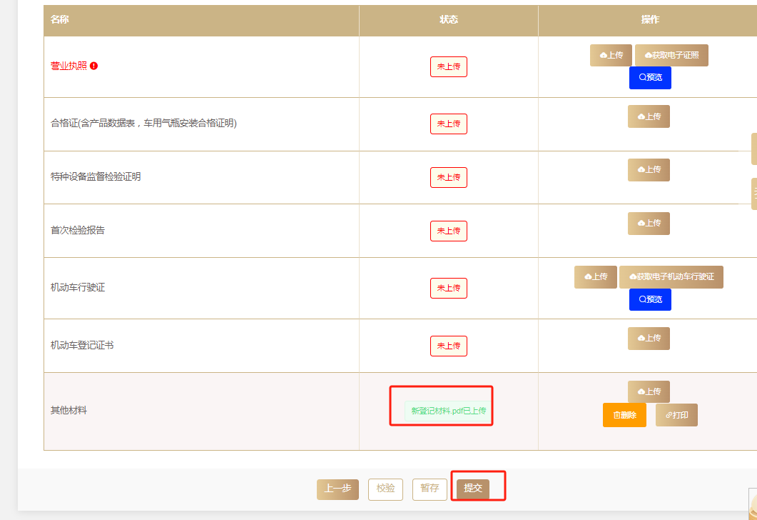 注:提交时,页面显示校验未通过,则代表相关信息未填写完整,可点击页面下方“校验”,按要求补充信息。